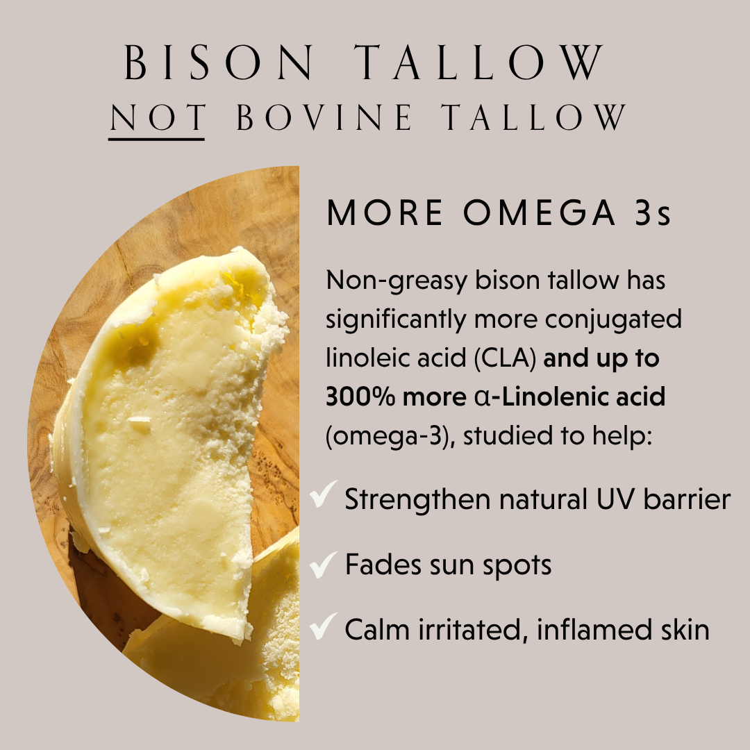The original bison tallow gel - enhanced with soothing Royal Green Hojari frankincense resin, silky olive squalane, and age-defying date extract